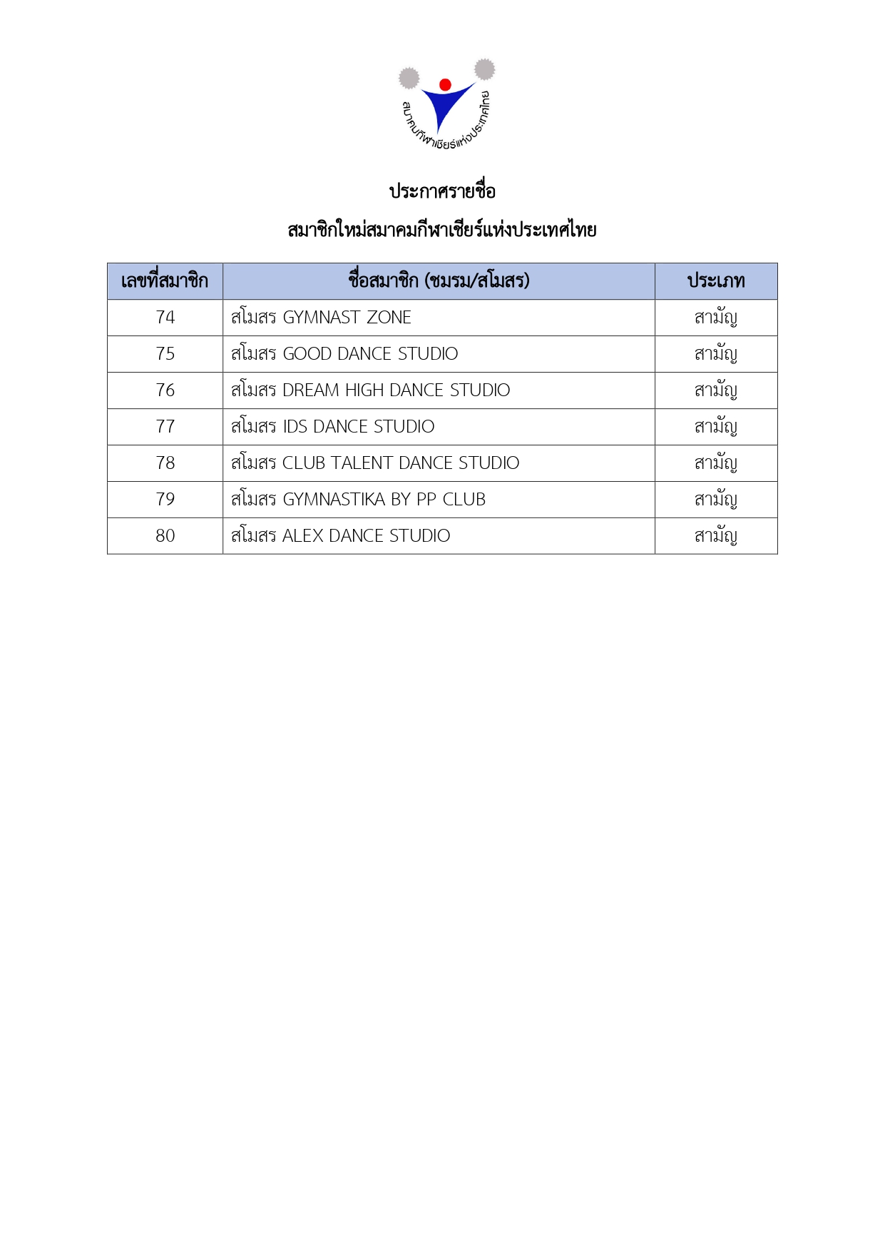 ประกาศรายชื่อสมาชิกรายใหม่สมาคมกีฬาเชียร์เเห่งประเทศไทย