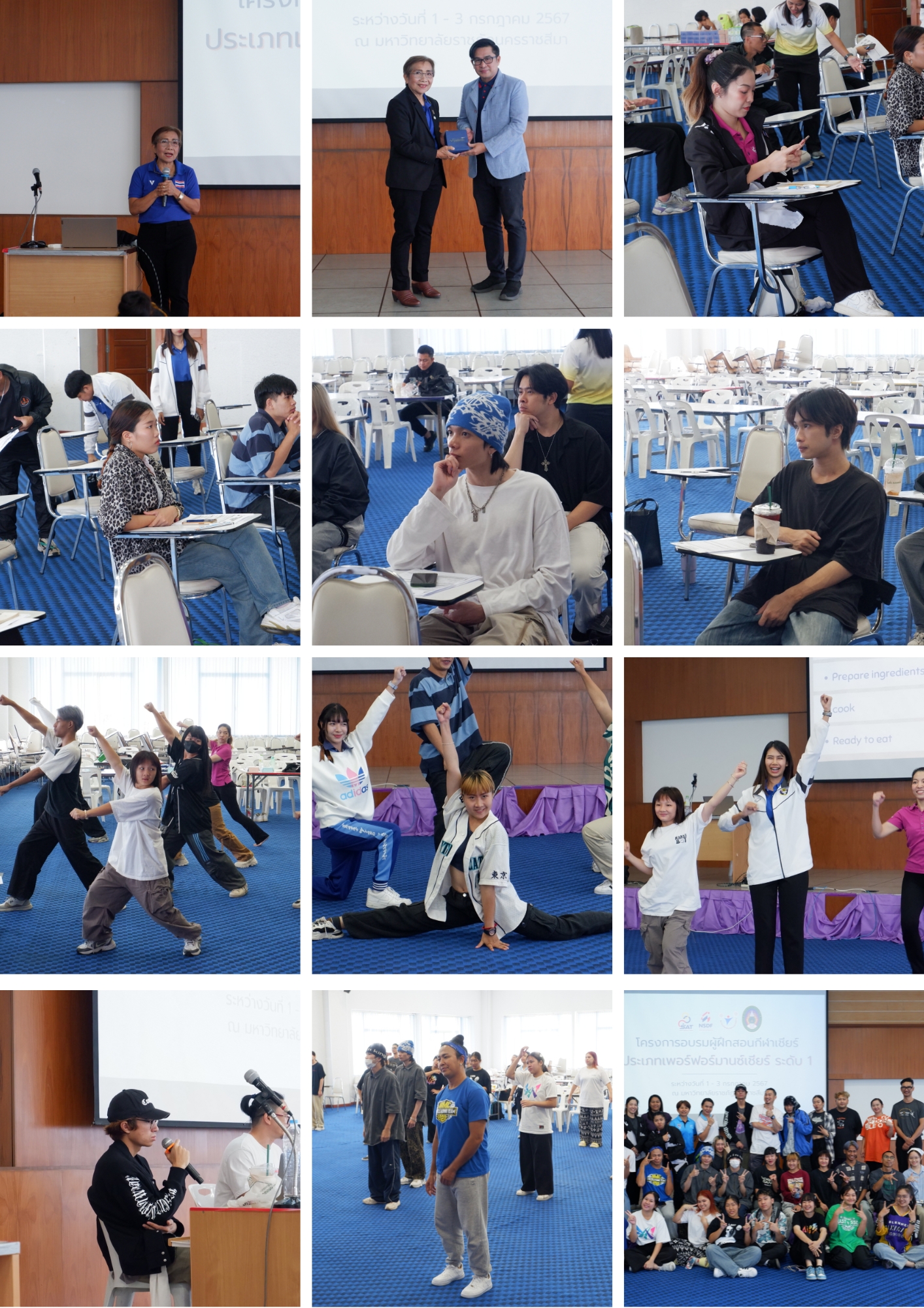 เมื่อวันที่ 1 – 3 กรกฎาคม 2567 สมาคมกีฬาเชียร์แห่งประเทศไทยกำหนดจัดโครงการอบรมผู้ฝึกสอนกีฬาเชียร์ ประเภทเพอร์ฟอร์มานซ์ เชียร์ ระดับ 1 ณ มหาวิทยาลัยราชภัฎนครราชสีมา โดยมีวัตถุประสงค์เพื่อพัฒนาทักษะ และเทคนิคการฝึกซ้อมกีฬาเชียร์ ประเภทเพอร์ฟอร์มานซ์ เชียร์ ไปประยุกต์ใช้ในการฝึกสอนนักกีฬา อย่างปลอดภัย ตลอดจนการขยายฐาน และพัฒนานักกีฬา เพื่อก้าวสู่ความเป็นเลิศด้านกีฬา